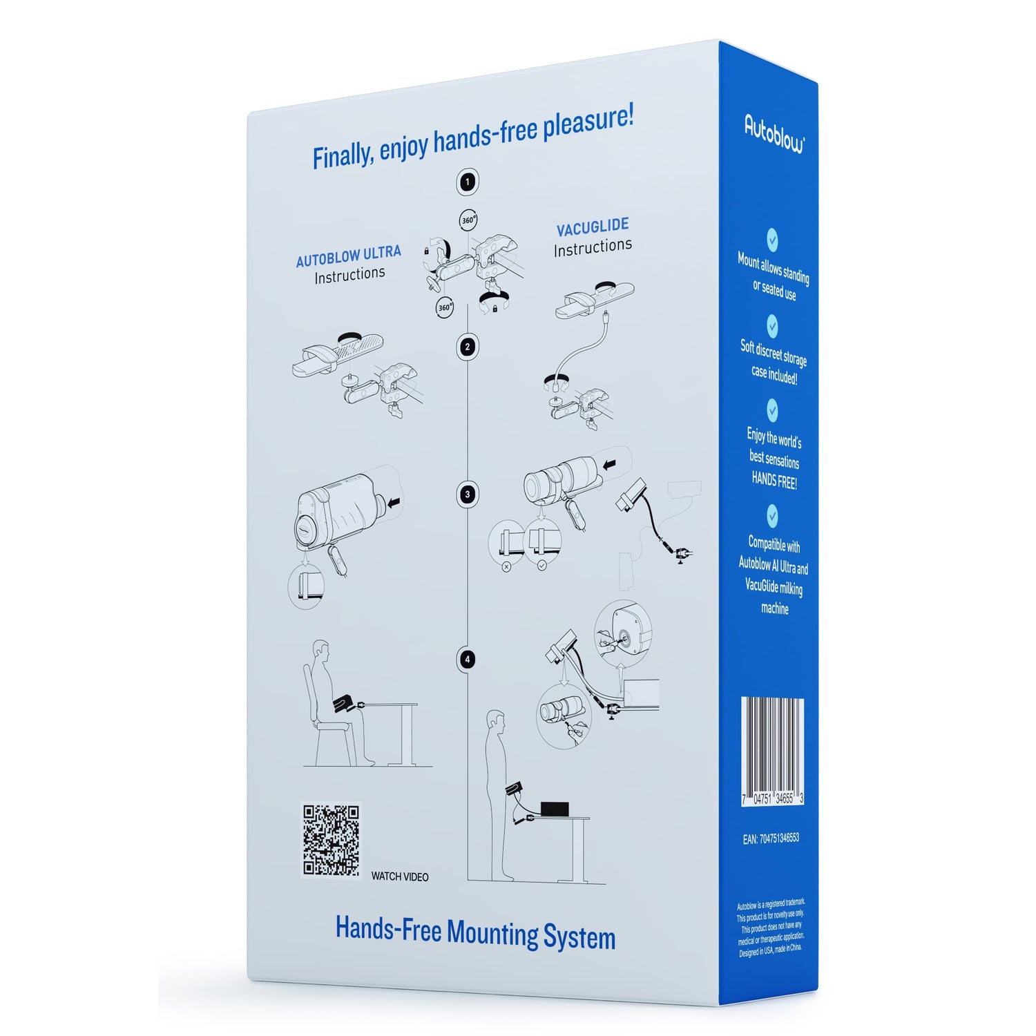 Autoblow Hands-Free Mounting System is a metal clamp mount designed to secure compatible devices to a desk or table for stable hands-free use while seated or standing. Its adjustable arm articulates up to 270 degrees for flexible positioning, and the sturdy construction helps keep the device in place during use. It is also compatible with VacuGlide, supporting suspended desk mounting and a more secure fit.
