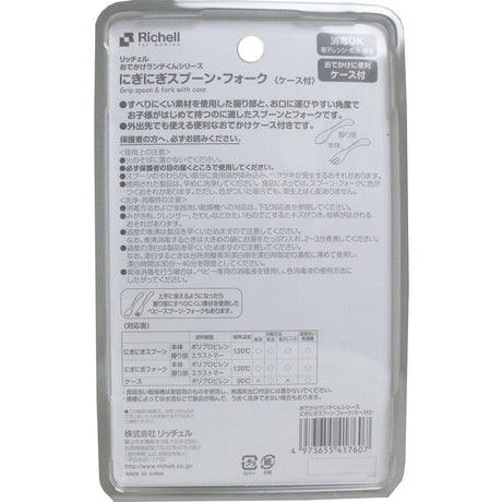 Richell - Odekake Nigi Nigi 易握婴儿勺子和叉子带储物盒